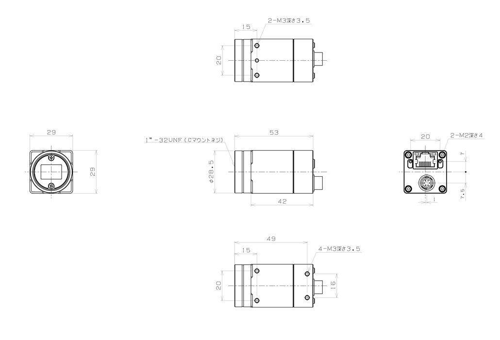 Dimensions 29 (W) x 29 (H) x 53 (D) mm