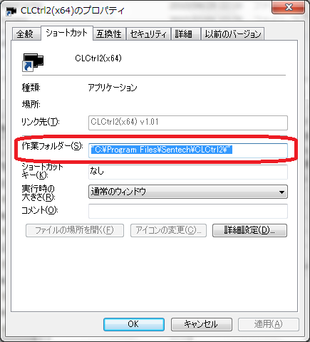 CLCtrl2.exeの存在するフォルダは、CLCtrl2のショートカットを右クリックをして