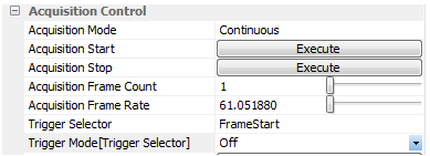 StViewerを使用してカメラを接続し、「Trigger Mode」をOffに設定することでフリーランモードに戻ります。