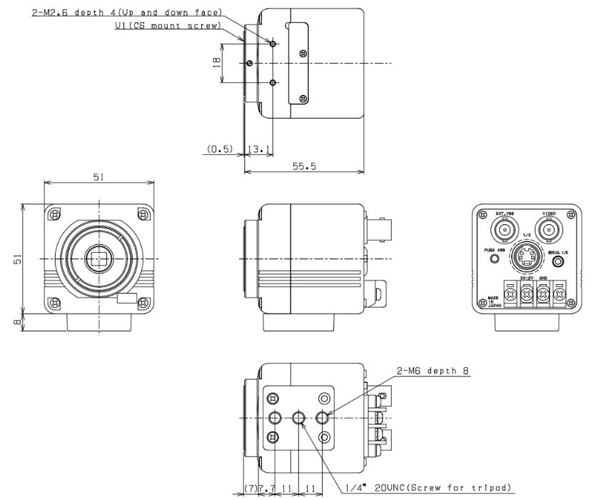 | 電源・信号コネクタ | 電源: 端子台 x 1個 Y/C出力: S端子コネクタ x 1個 同期信号: BNC x 1個 制御: 3.5mmステレオジャック x 1個 |
