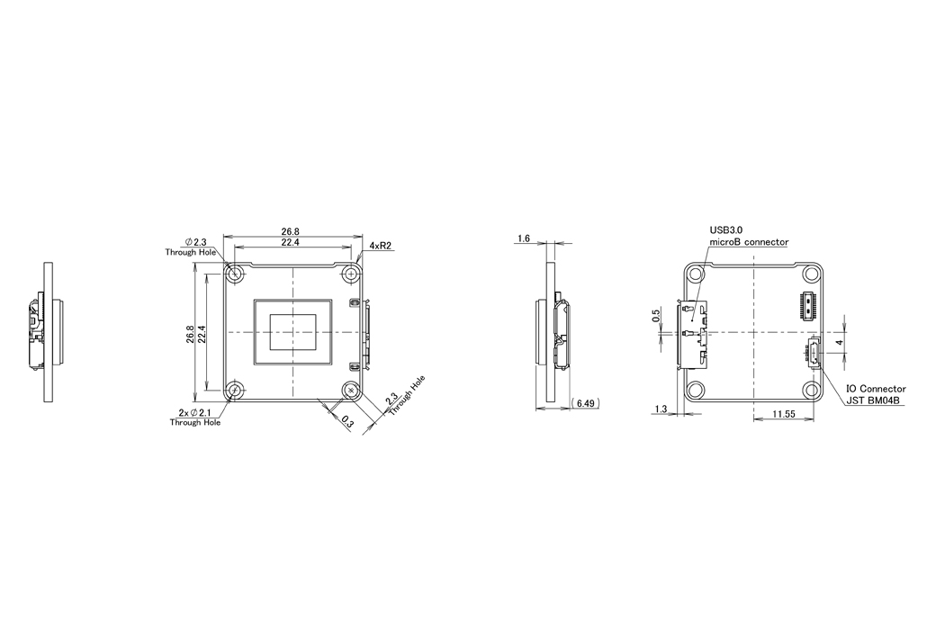 | 外形寸法 | 26.8 (W) x 26.8 (H) x 6.49 (D) mm |
