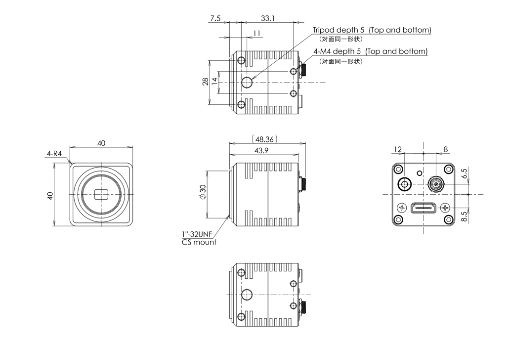 外形寸法 40 (W) x 40 (H) x 43.9 (D) mm