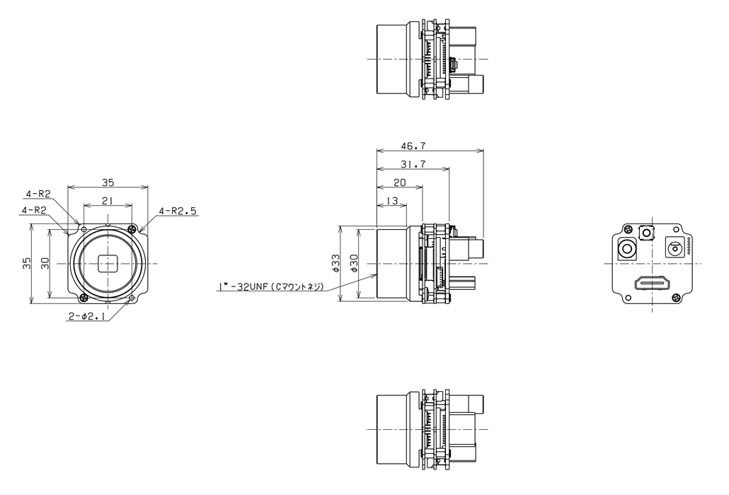 外形寸法 35 (W) x 35 (H) x 31.7 (D) mm