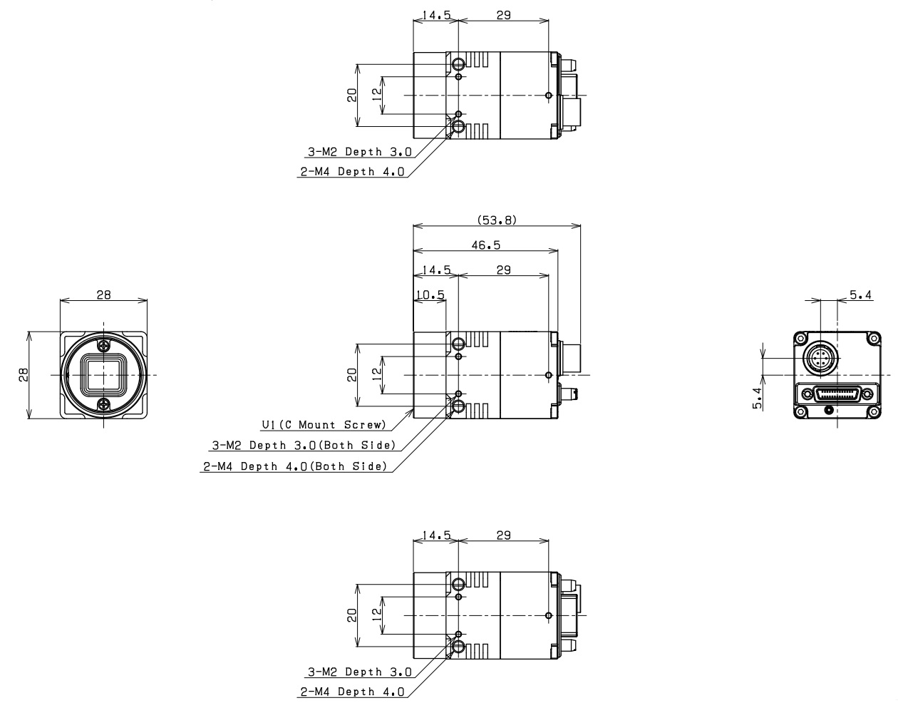 外形寸法 28 (W) x 28 (H) x 46.5 (D) mm