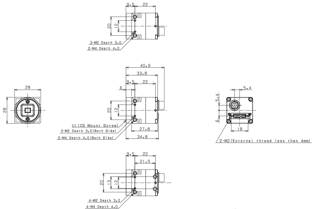 外形寸法 28 (W) x 28 (H) x 33.8 (D) mm