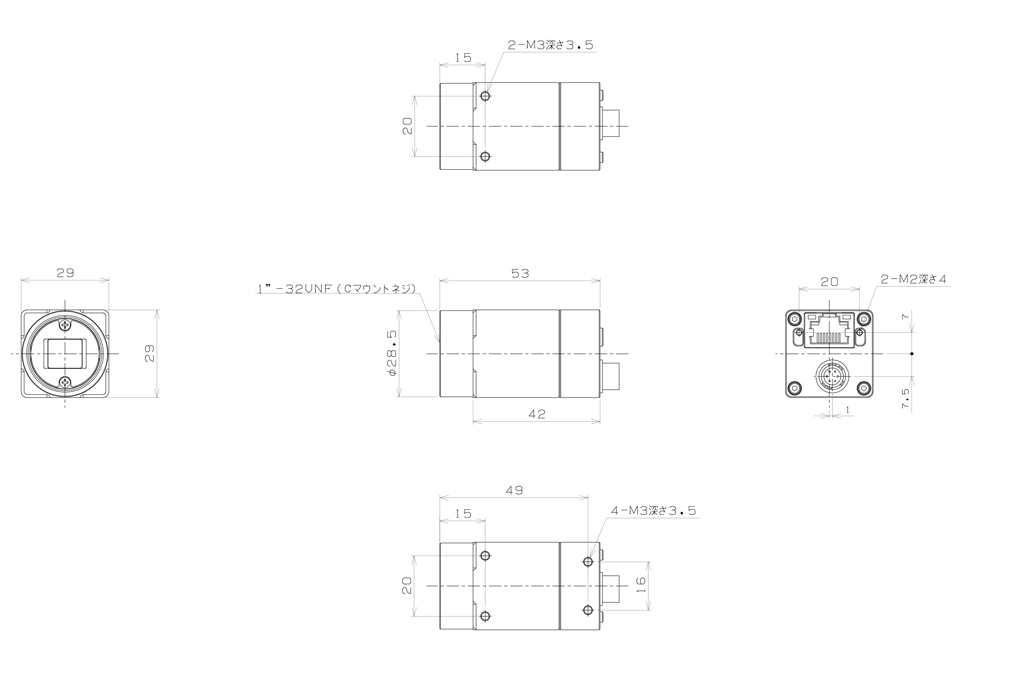 | センサ画素サイズ | 6.9 (H) x 6.9 (V) µm |