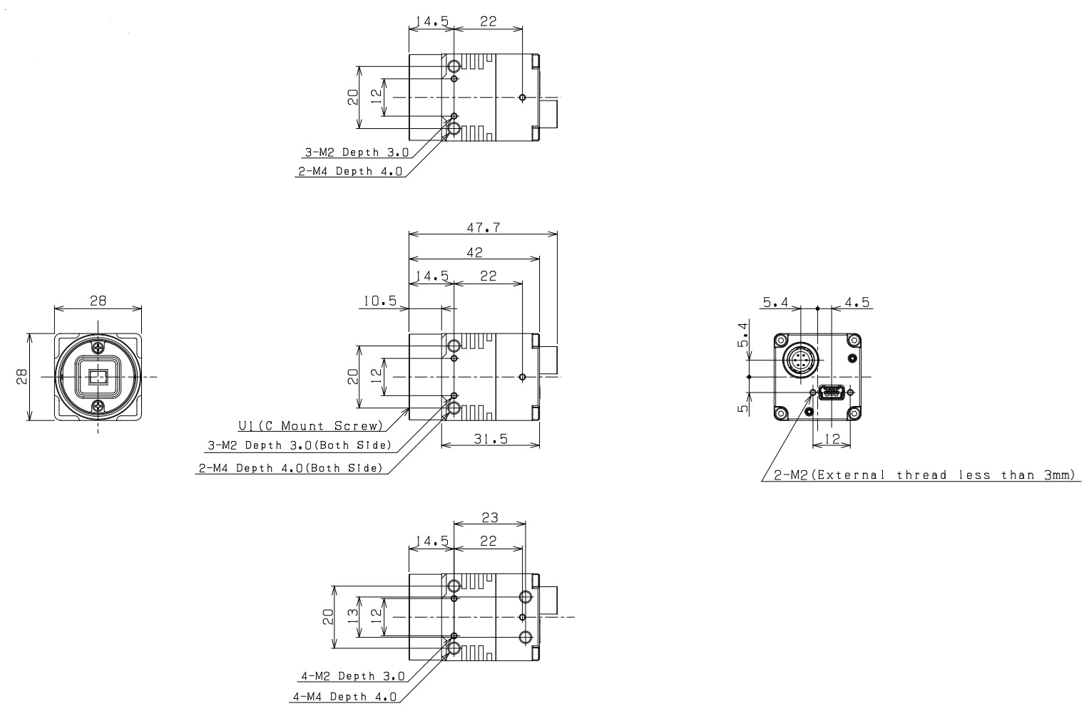 外形寸法 28 (W) x 28 (H) x 42 (D) mm