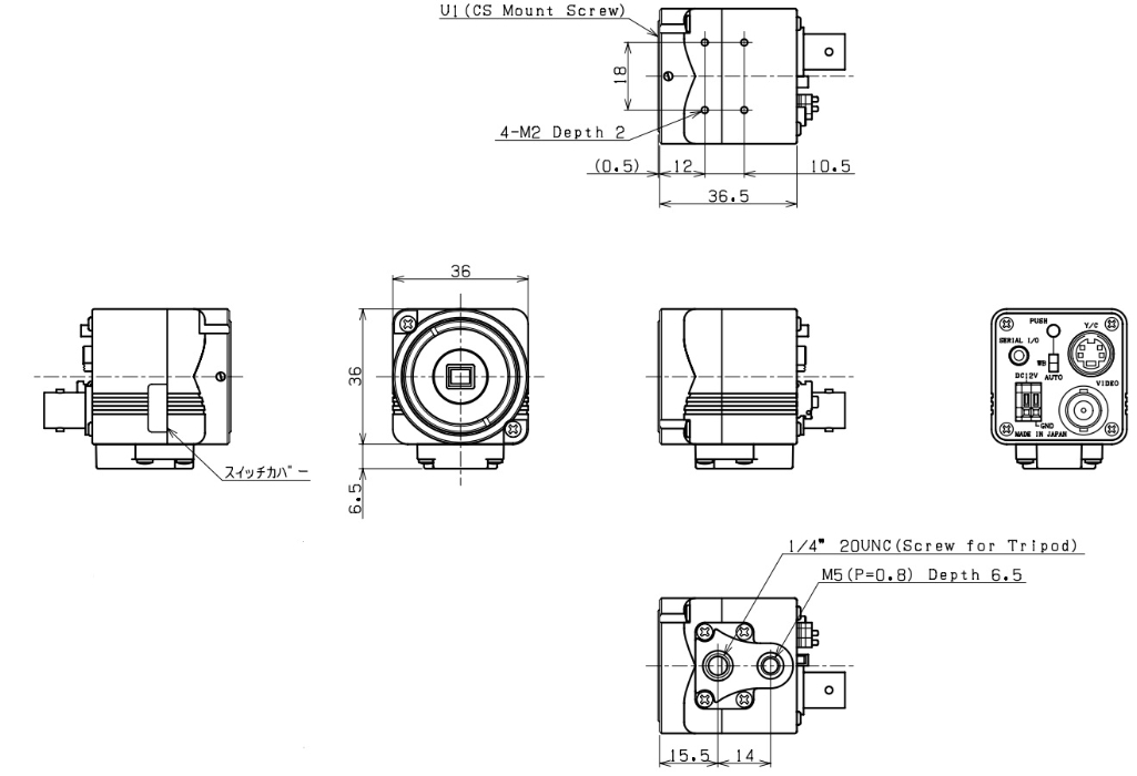 | 電源・信号コネクタ | 電源: 端子台 x 1 個 Y/C出力: S端子コネクタ x 1 個 制御: 3.5mmステレオジャック x 1 個 |