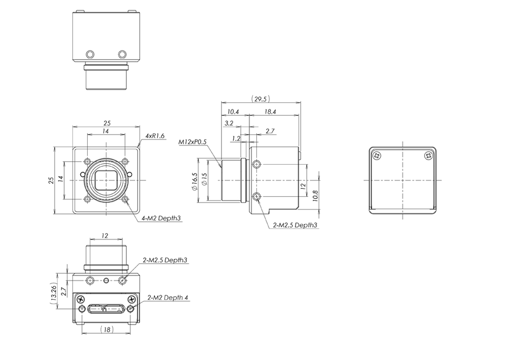 外形寸法 25 (W) x 25 (H) x 29.5 (D) mm