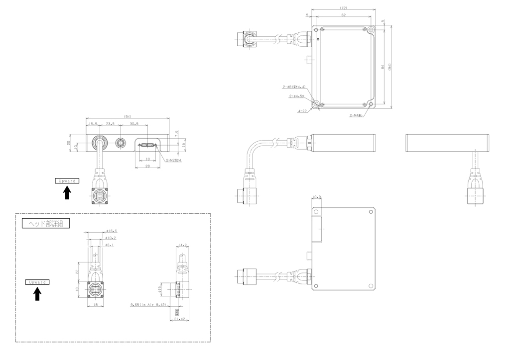| 外形寸法 | ヘッド: 18 (W) x 18 (H) x 21.42 (D) mm CCU: 94 (W) x 72 (H) x 20 (D) mm ケーブル: 1 m |