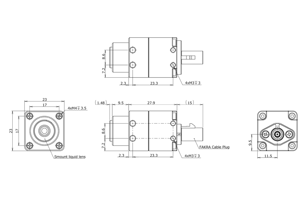 * 液体レンズ: 焦点距離 9.6m F No. 3.7