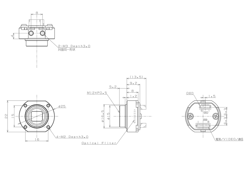 電源・信号コネクタ BM8B-SRSS-TB (JST) x 1個 (インターフェースコネクタ共通)