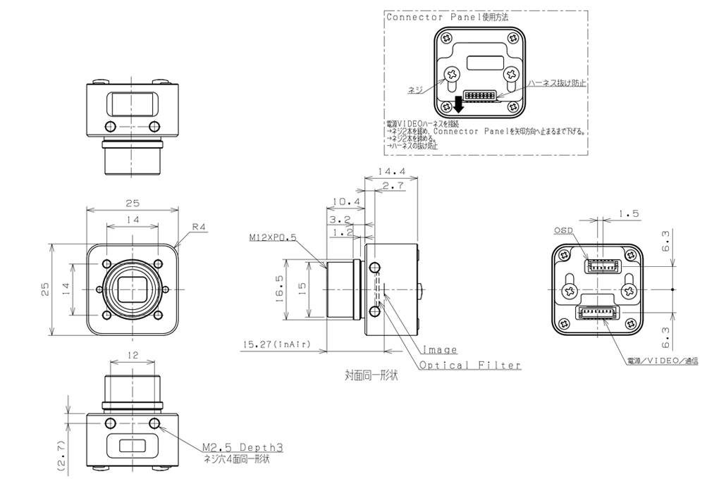 外形寸法 25 (W) x 25 (H) x 14.4 (D) mm
