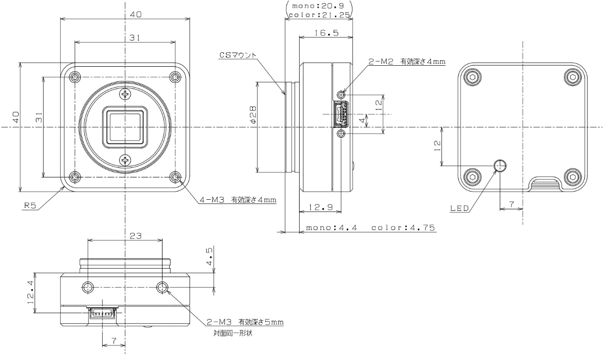 外形寸法 40 (W) x 40 (H) x 20.9 (D) mm