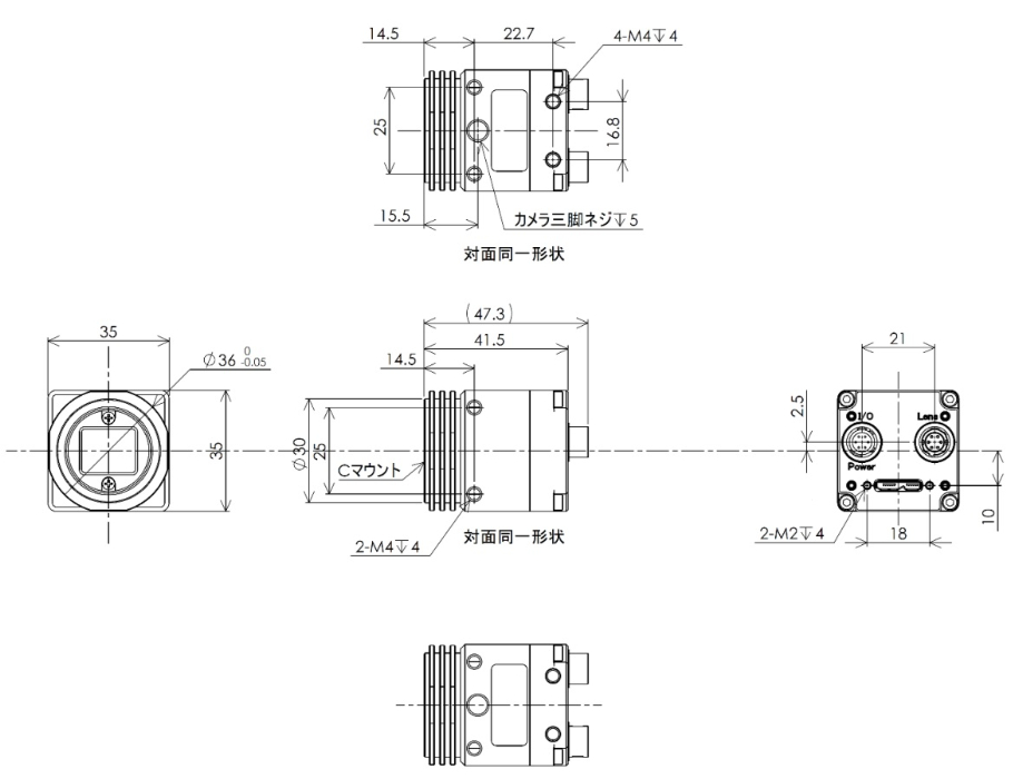 | 電源・信号コネクタ | 電源・信号: HR10A-7R-6PB (ヒロセ電機) 相当品 x 1 個 レンズ: HR10A-7R-6S (ヒロセ電機) 相当品 x 1 個 |