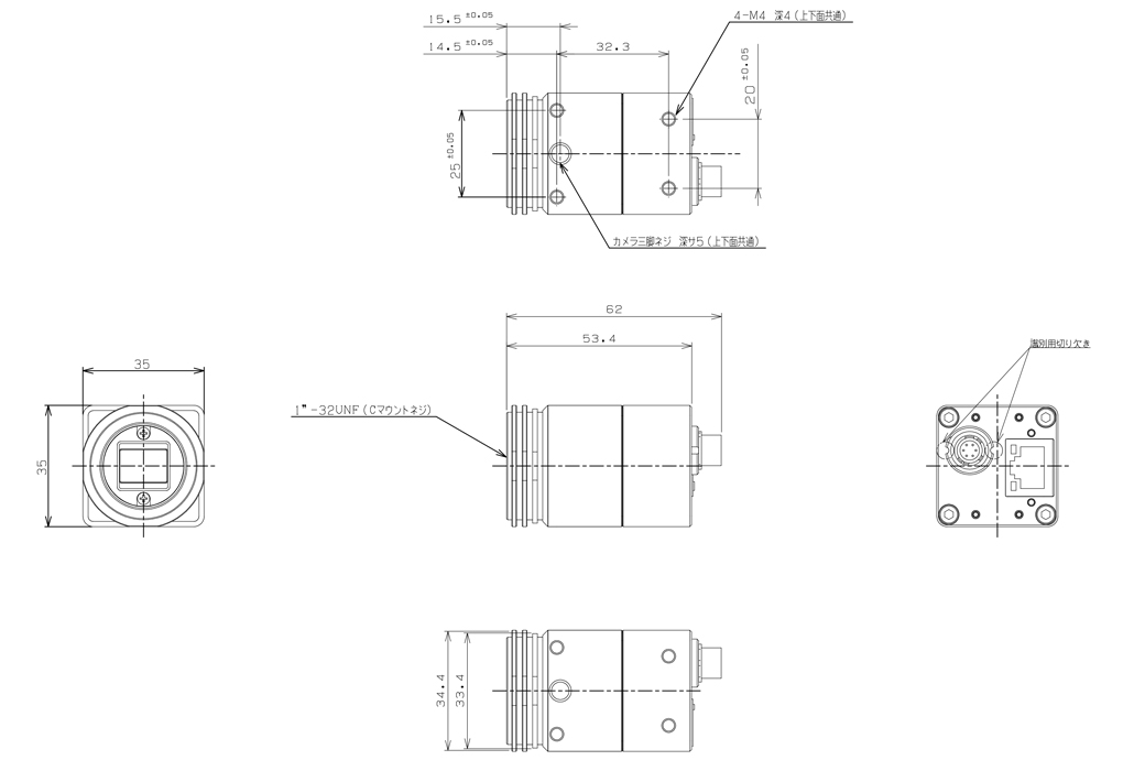 外形寸法 35 (W) x 35 (H) x 53.4 (D) mm
