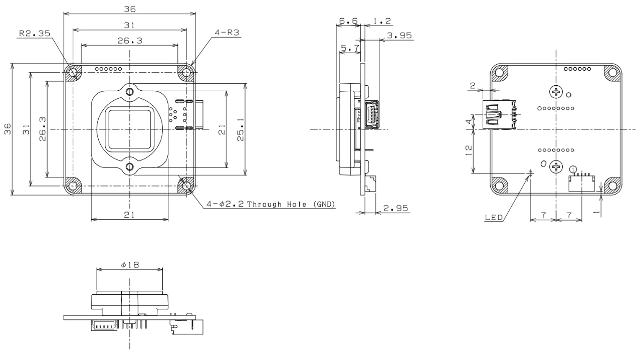 | 外形寸法 | 36 (W) x 36 (H) x 7.8 (D) mm |