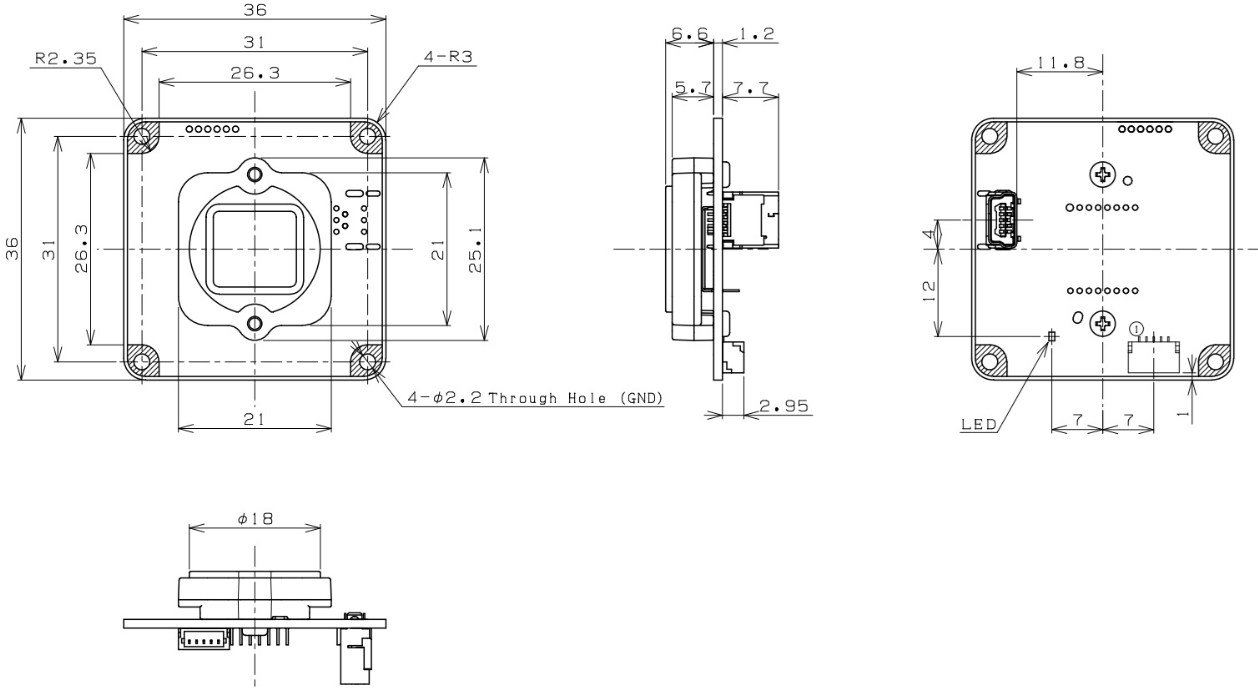外形寸法 36 (W) x 36 (H) x 7.8 (D) mm